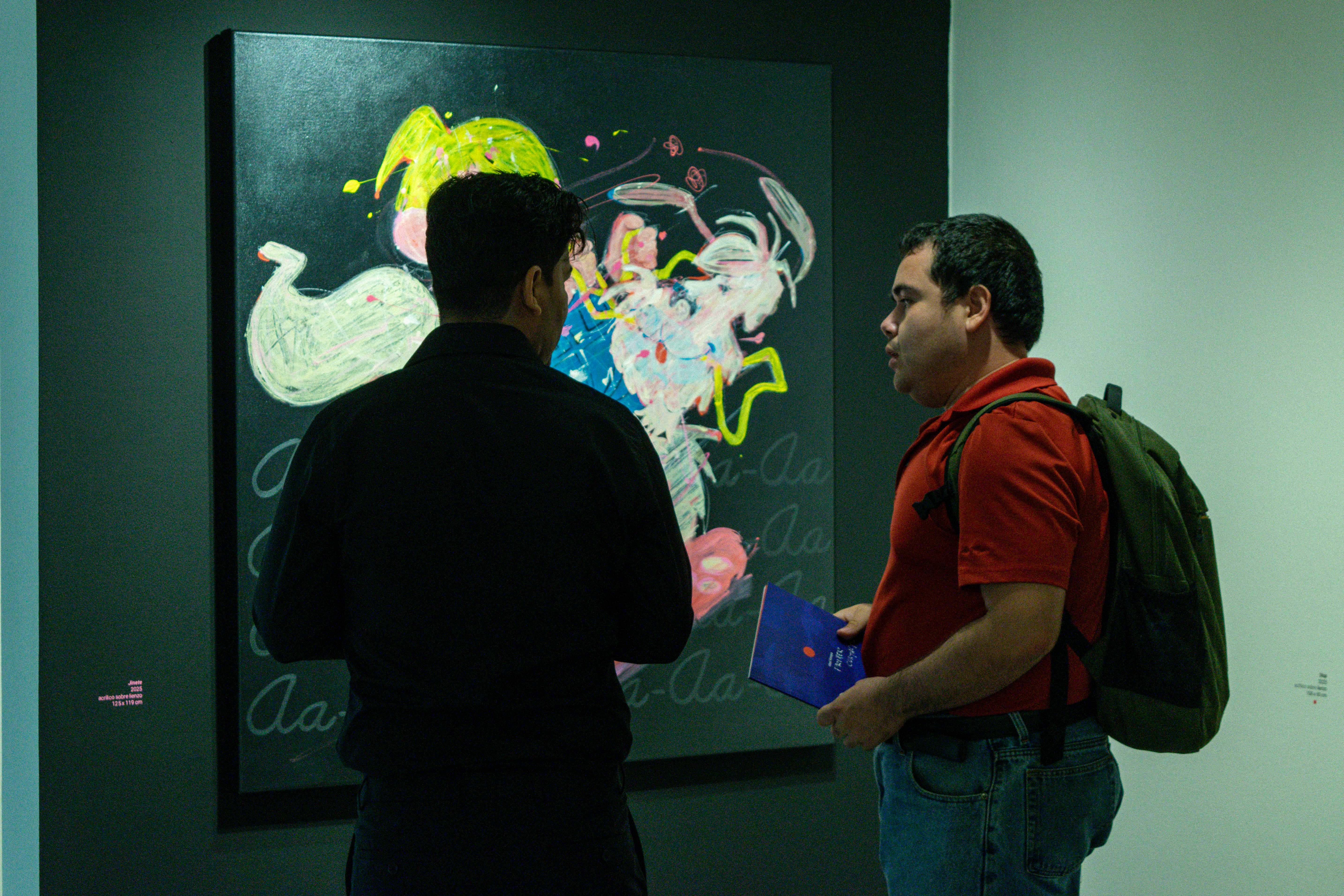 Primer contacto es precisamente eso: un umbral compartido, una puerta que se abre para facilitar la entrada de un nuevo lenguaje al escenario del arte contemporáneo salvadoreño. Se trata de la primera exposición personal de Abel Amaya, un artista que irrumpe con una voz propia, cargada de códigos visuales condicionados por la libertad irreverente de quien aún no teme.