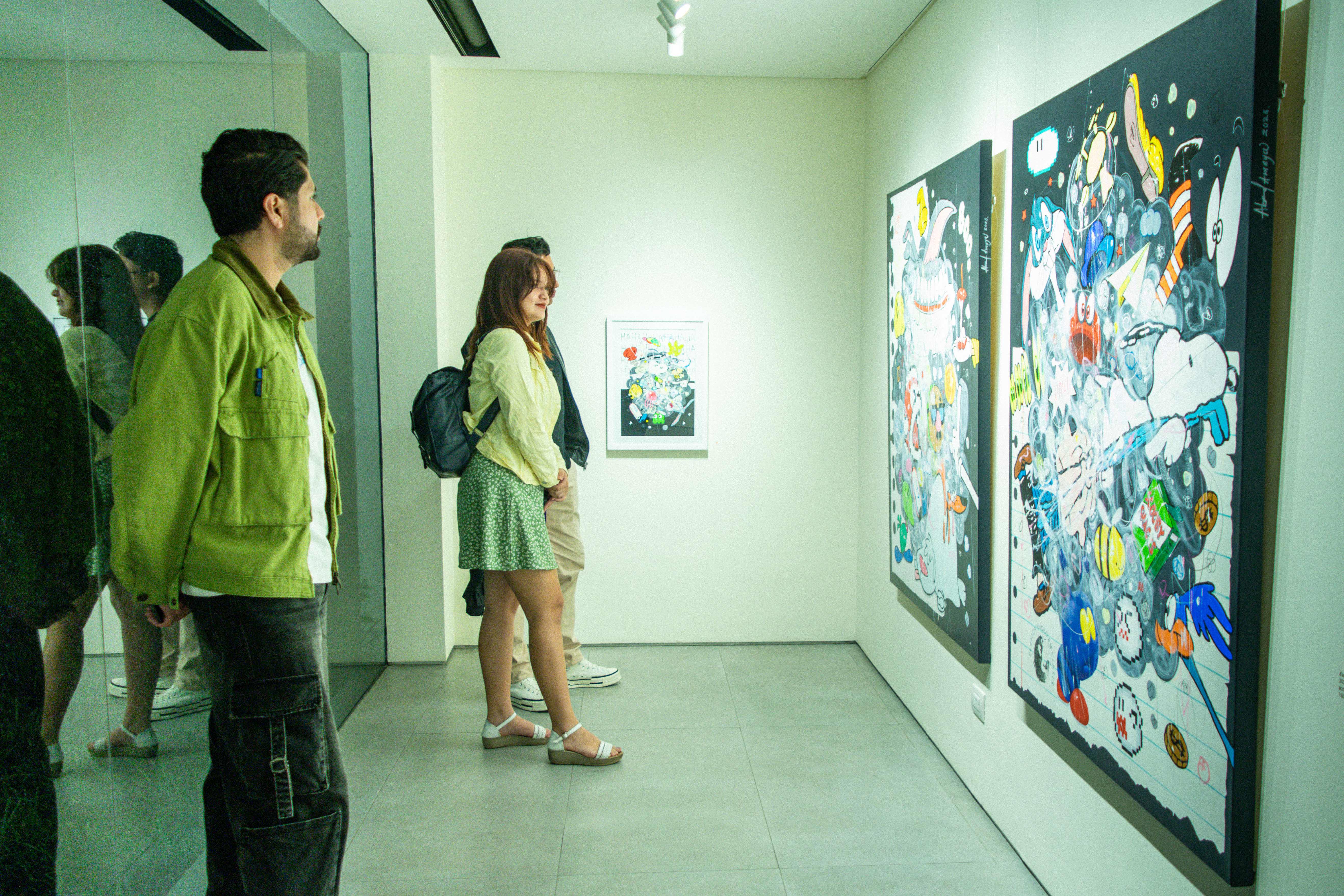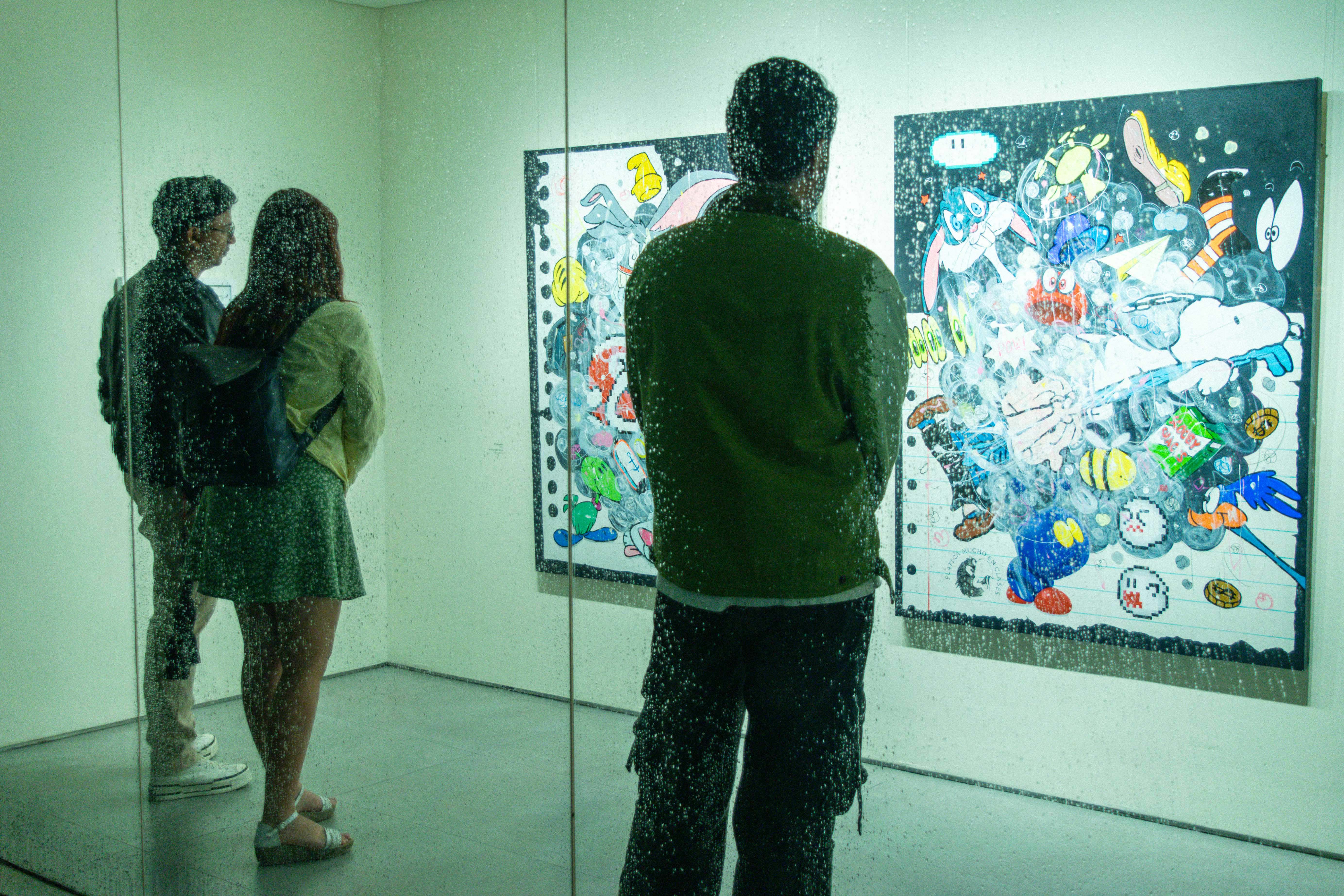 Este gesto instala una nueva lectura sobre la muestra: lo que parecía caos puede ser también acumulación de memoria. Lo que parecía grito, puede ser eco. En este pequeño refugio, Amaya no solo nos devuelve a un punto de origen —la infancia, la cultura popular, la imagen como asombro—, sino que señala ese espacio como el verdadero motor de su obra. No se trata de nostalgia en su forma más simple, sino de una recuperación crítica de los estímulos que dieron forma a su lenguaje. Como si, en medio del ruido del presente, la única forma de seguir creando fuera recordar cómo mirábamos cuando todavía no sabíamos a dónde dirigir losojos. Así, la exposición se sostiene sobre una línea de tensión temporal que no busca resolverse, sino ser habitada.